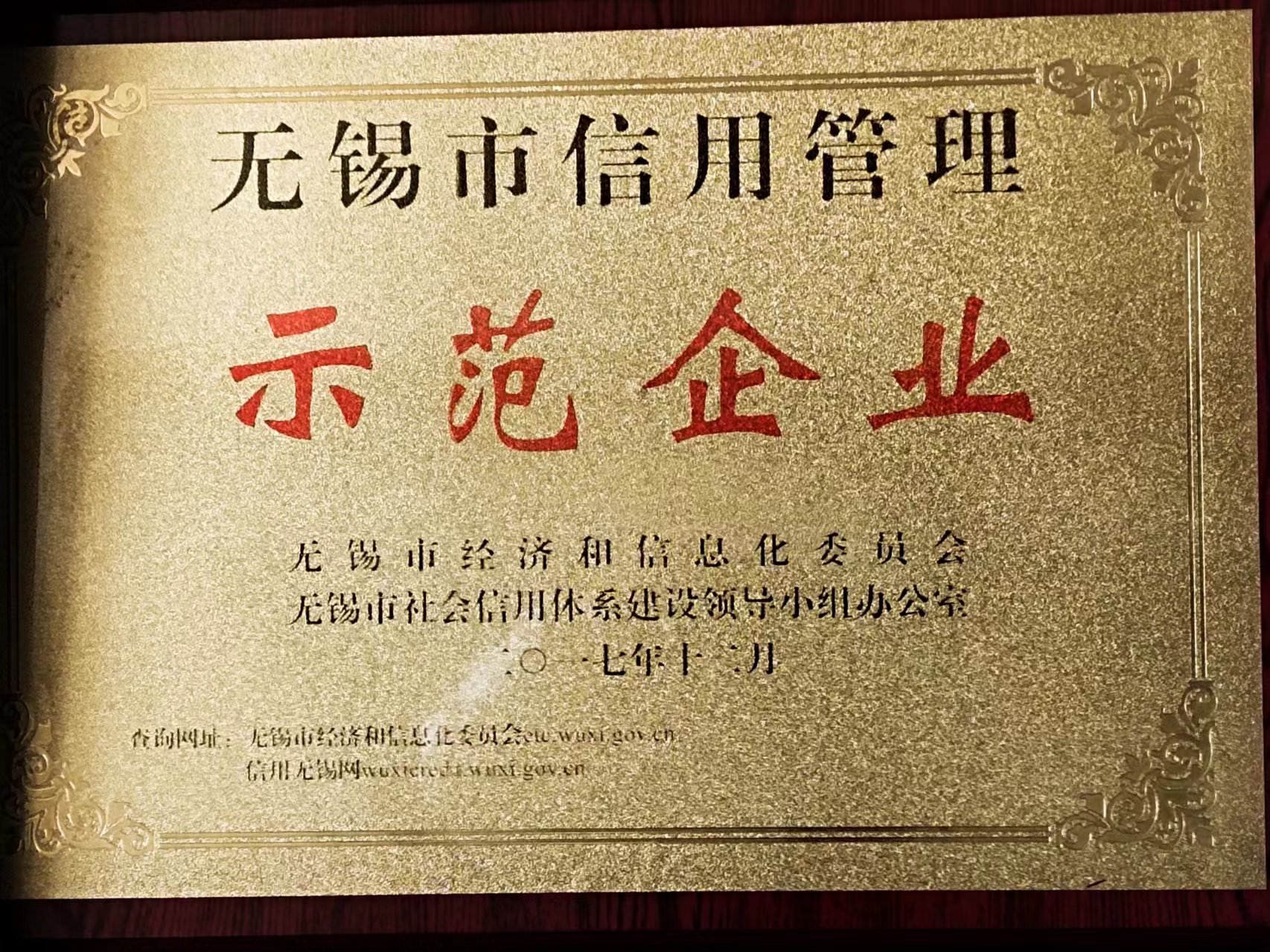 無(wú)錫市信用管理示范企業(yè)