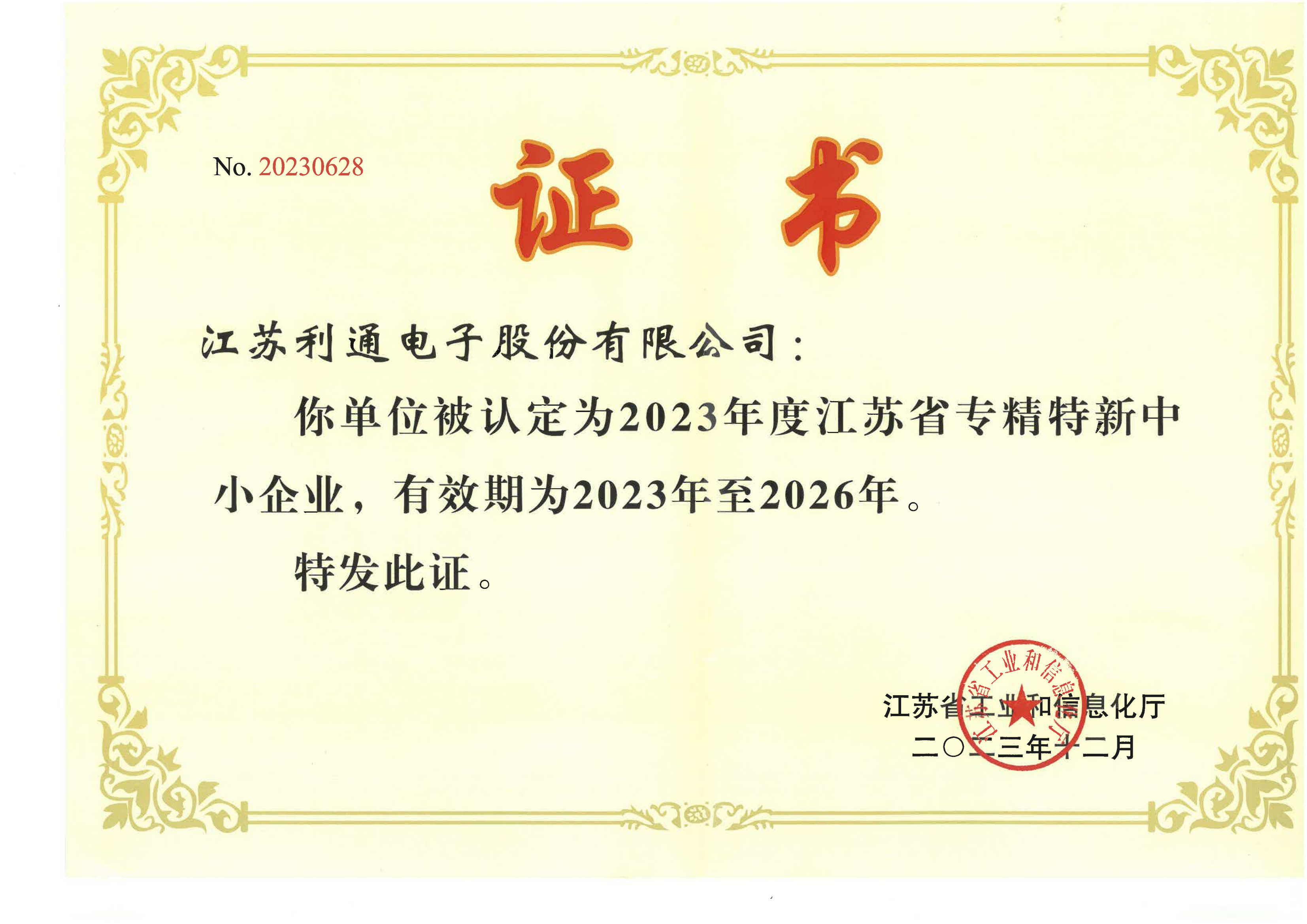 省級(jí)專(zhuān)精特新證書(shū)
